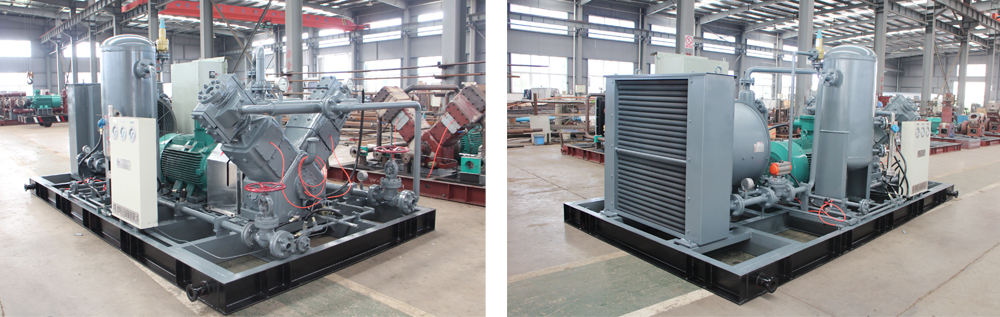 3、压缩机主机及辅机等设备全部安装在橇架上,运行平稳可靠,整体撬装便于压缩机的运输与安装。