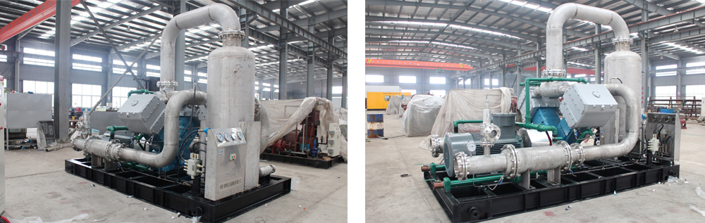 3、压缩机主机及辅机等设备全部安装在橇架上,运行平稳可靠,整体撬装便于压缩机的运输与安装。