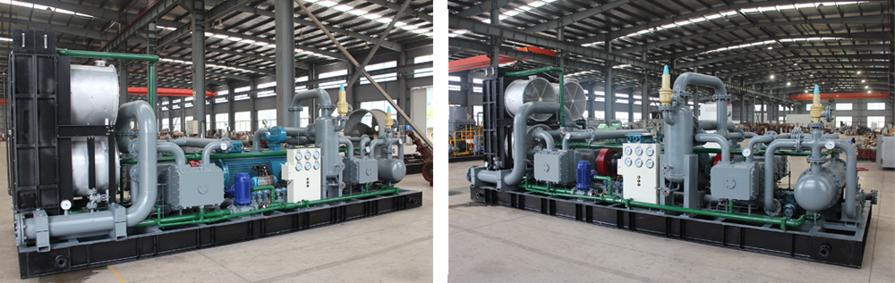 3、压缩机主机及辅机等设备全部安装在橇架上,运行平稳可靠,整体撬装便于压缩机的运输与安装。